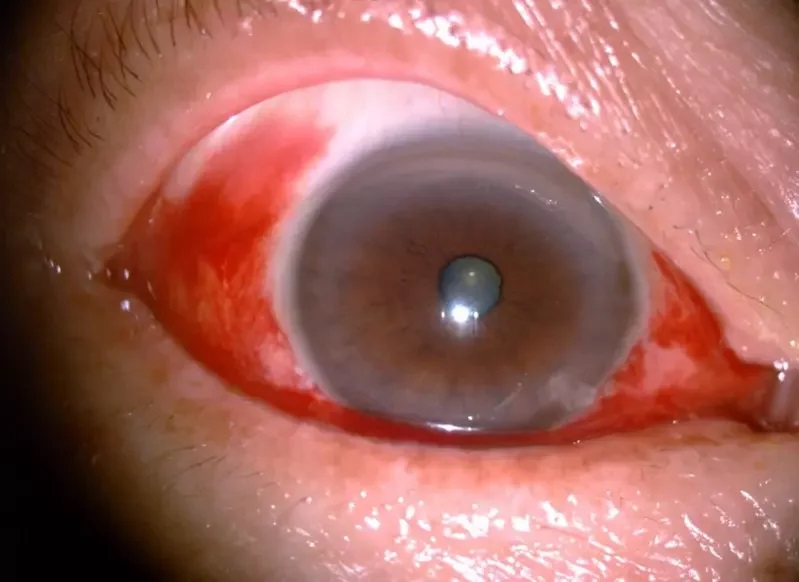 收治這起病例的達特楊眼科聯盟執行長洪啟庭說,20多歲的陳小姐去年底寒流期間,左眼莫名被血塊包覆,半個白眼球變得紅通通,她照鏡子時簡直嚇壞,後來由家人陪同就醫,原本近視600度的她左眼視力還有0.8,起初開類固醇藥水以降低滲血量,並開抗生素避免二次感染。