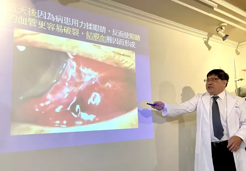 收治病例的達特楊眼科聯盟執行長洪啟庭說,陳小姐亂揉眼,原本結膜下出血變血腫,險些壓迫視神經造成失明。記者王昭月/攝影