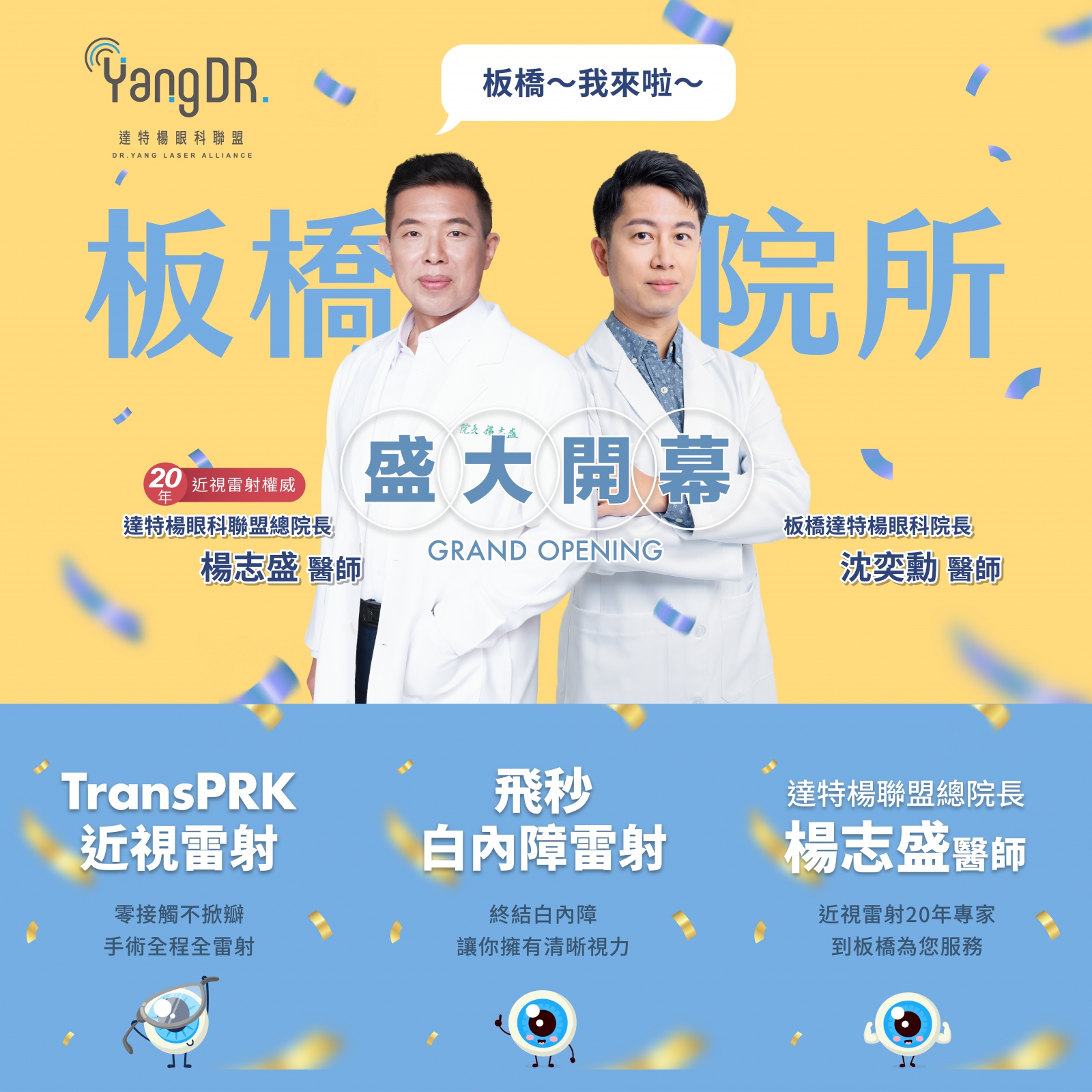 北部的朋友,等待已久的時刻終於到來啦!達特楊眼科要到板橋開分院啦!🎉🏥✨
